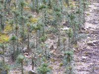 Weihnachtsbäume benötigen drei bis vier Jahre in der Baumschule bevor sie das wirkliche Leben auf dem Feld anfangen können. Die ersten beiden Jahre, wo das Saatgut keimen soll, stehen 500 Weihnachtsbäume pro Quadratmeter im Saatgutbeet, danach werden sie in neue Beete ausgepflanzt, wo etwa 40 Weihnachtsbäume pro Quadratmeter stehen.