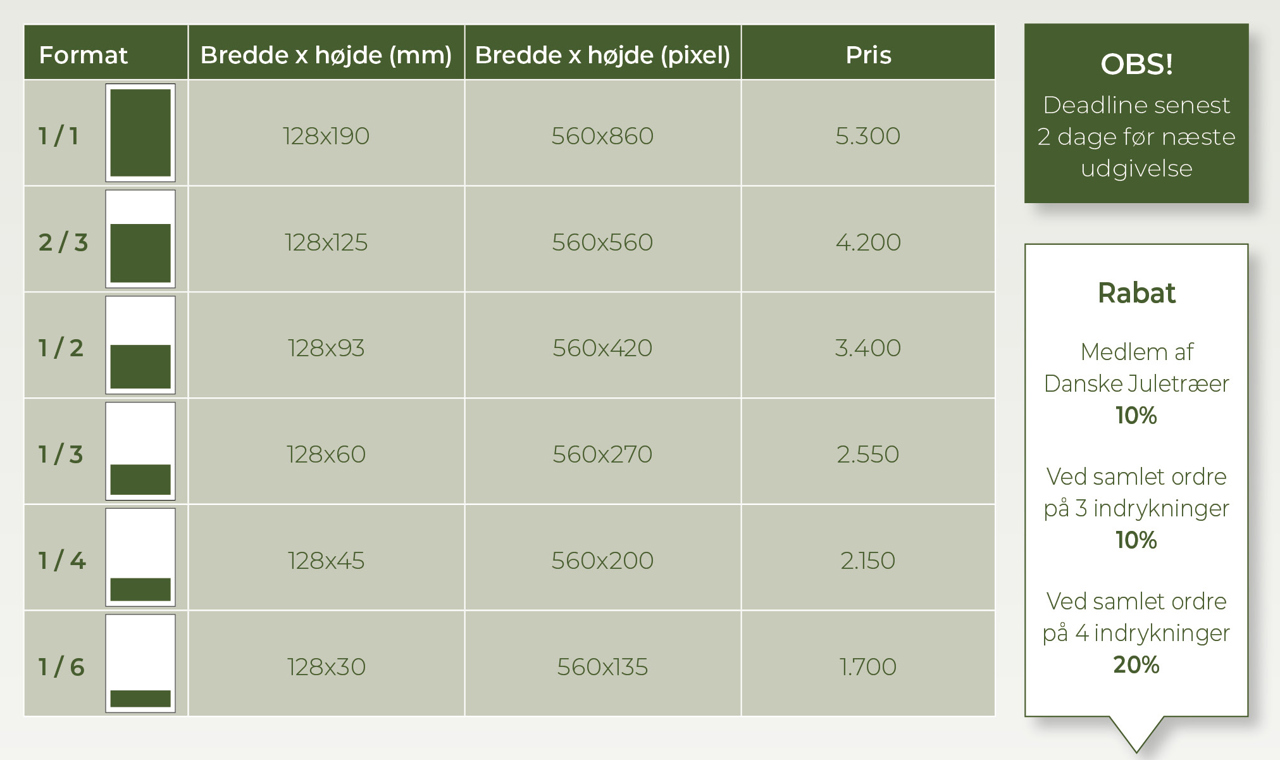 Priseksempel: 1/6-del side. 4 indryk. Medlem af Danske Juletræer.